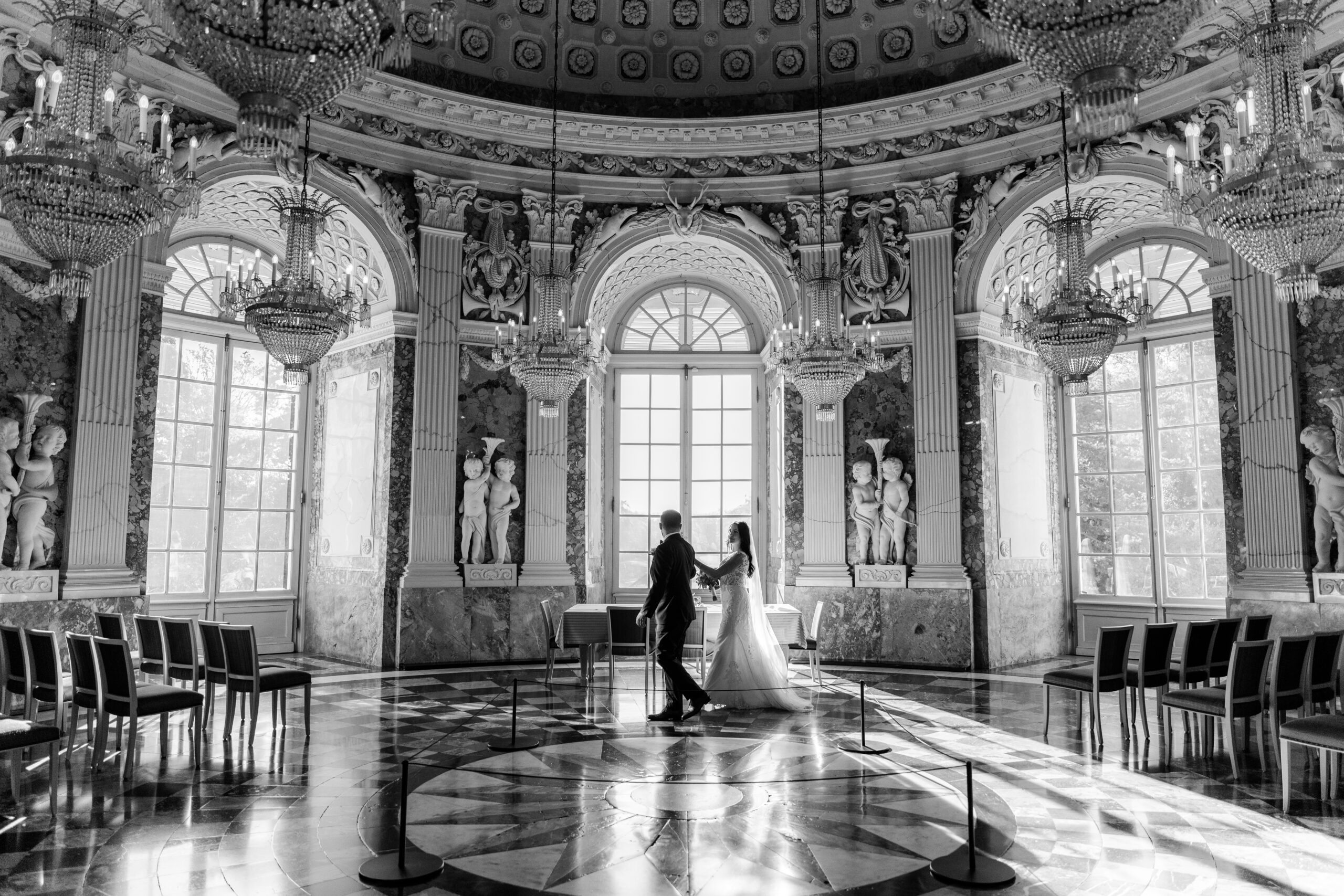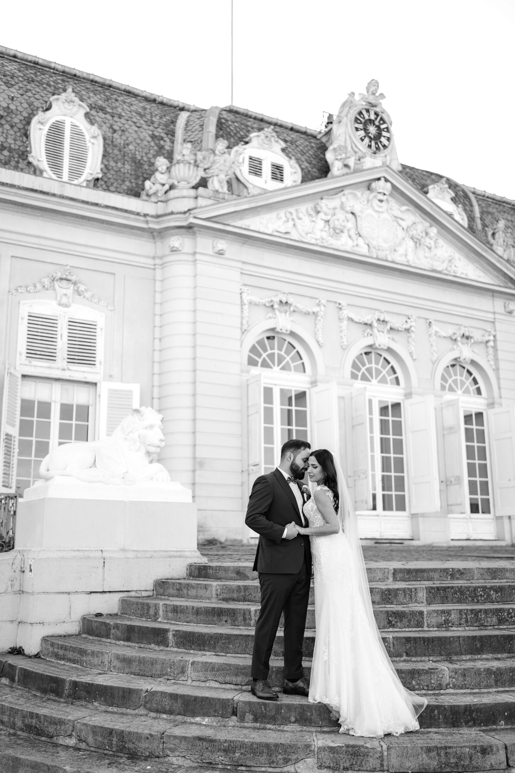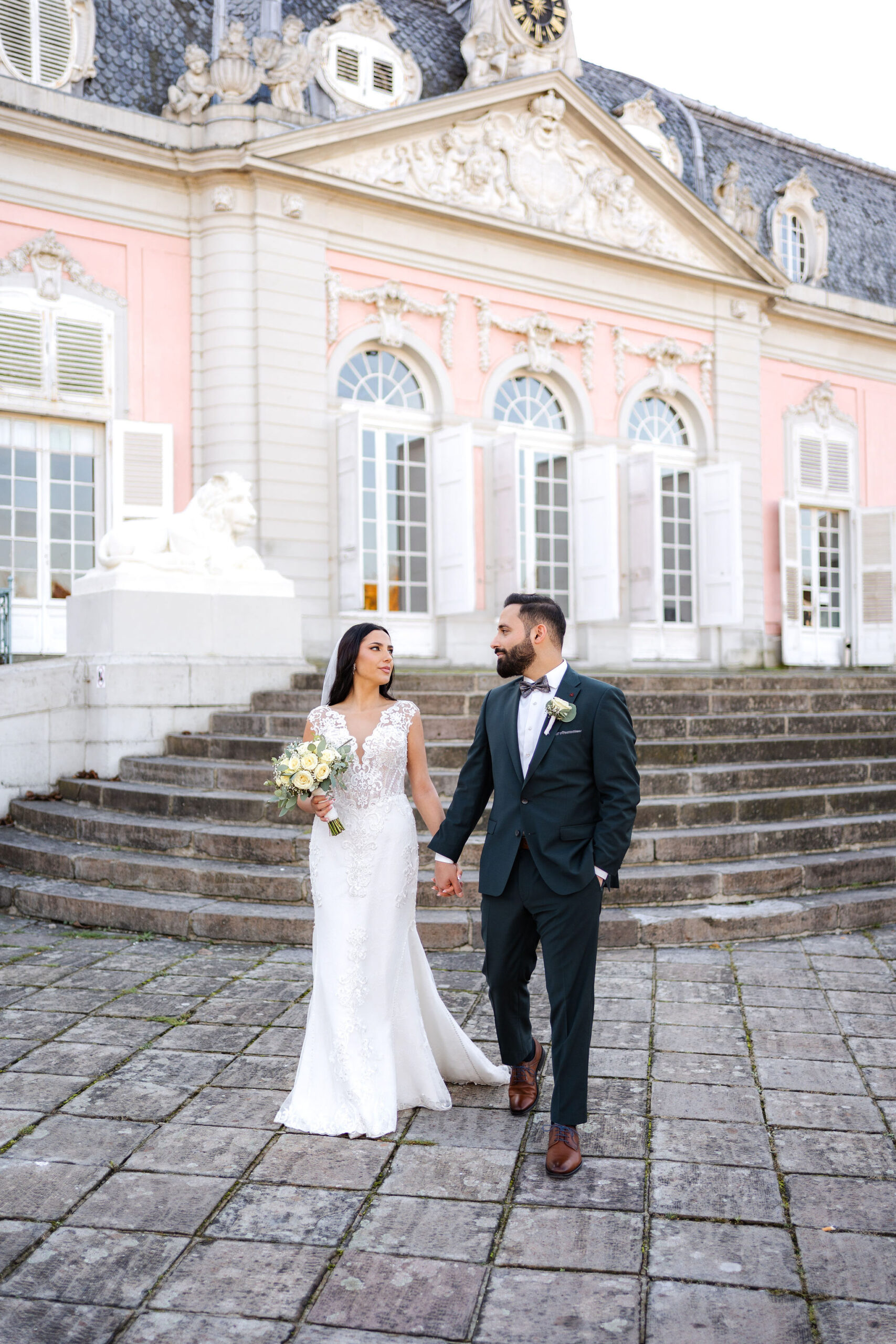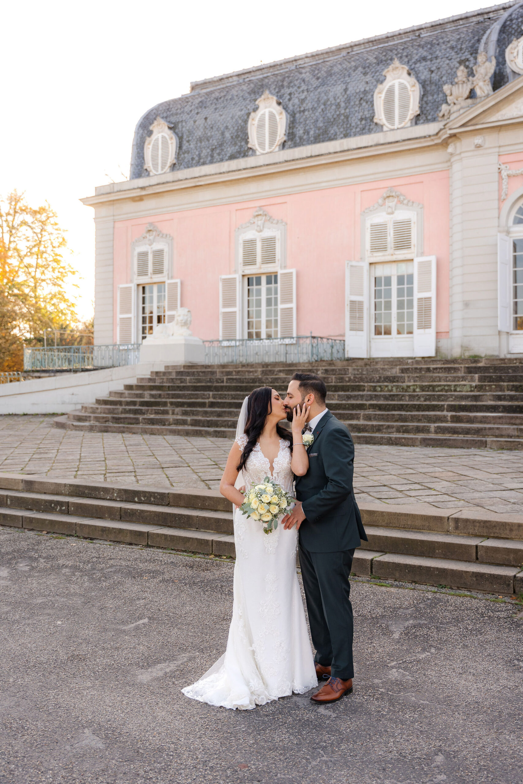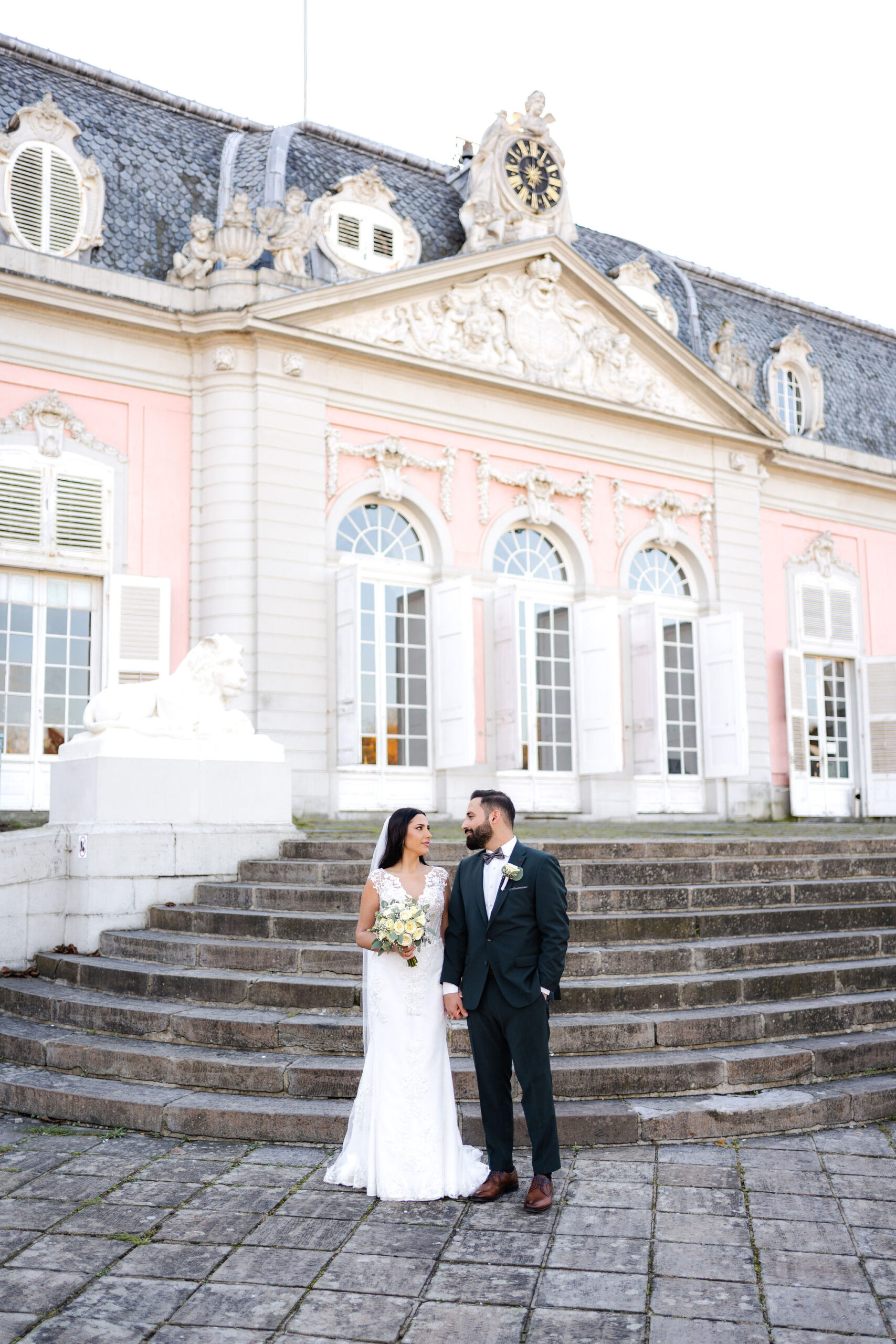 Elisabeth & Ihab feierten ihre standesamtliche Trauung im Schloss Benrath – eine Kulisse, die mit ihrer Klarheit und Eleganz den idealen Rahmen für ihren Tag bot. Zwischen den historischen Fassaden und den weiten Parkanlagen entstanden natürliche, zeitlose Aufnahmen voller Atmosphäre. Wie bei jeder Reportage lag der Fokus auf echten Momenten, ergänzt durch eine ruhige, präzise Anleitung, wenn sie sinnvoll war. Das Ergebnis ist eine Bildstrecke, die den Tag nicht nur zeigt, sondern fühlbar macht.