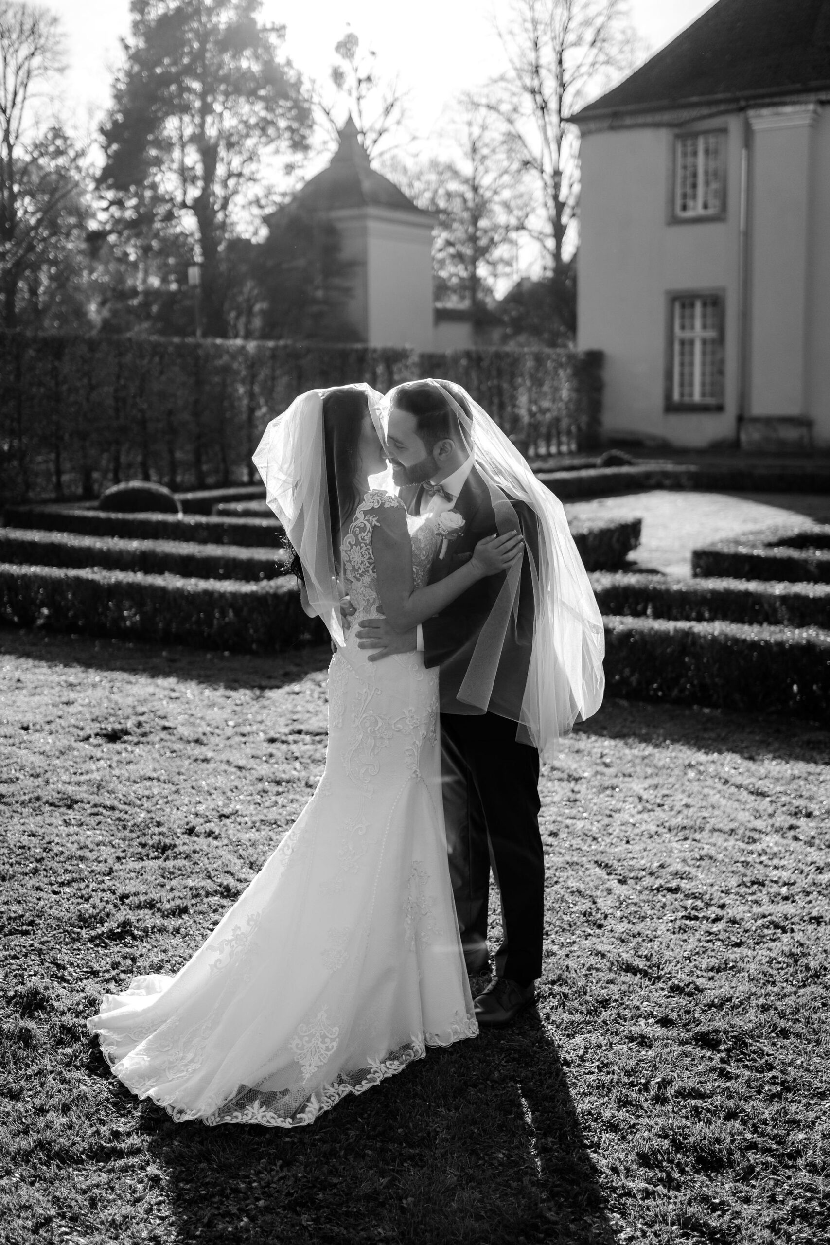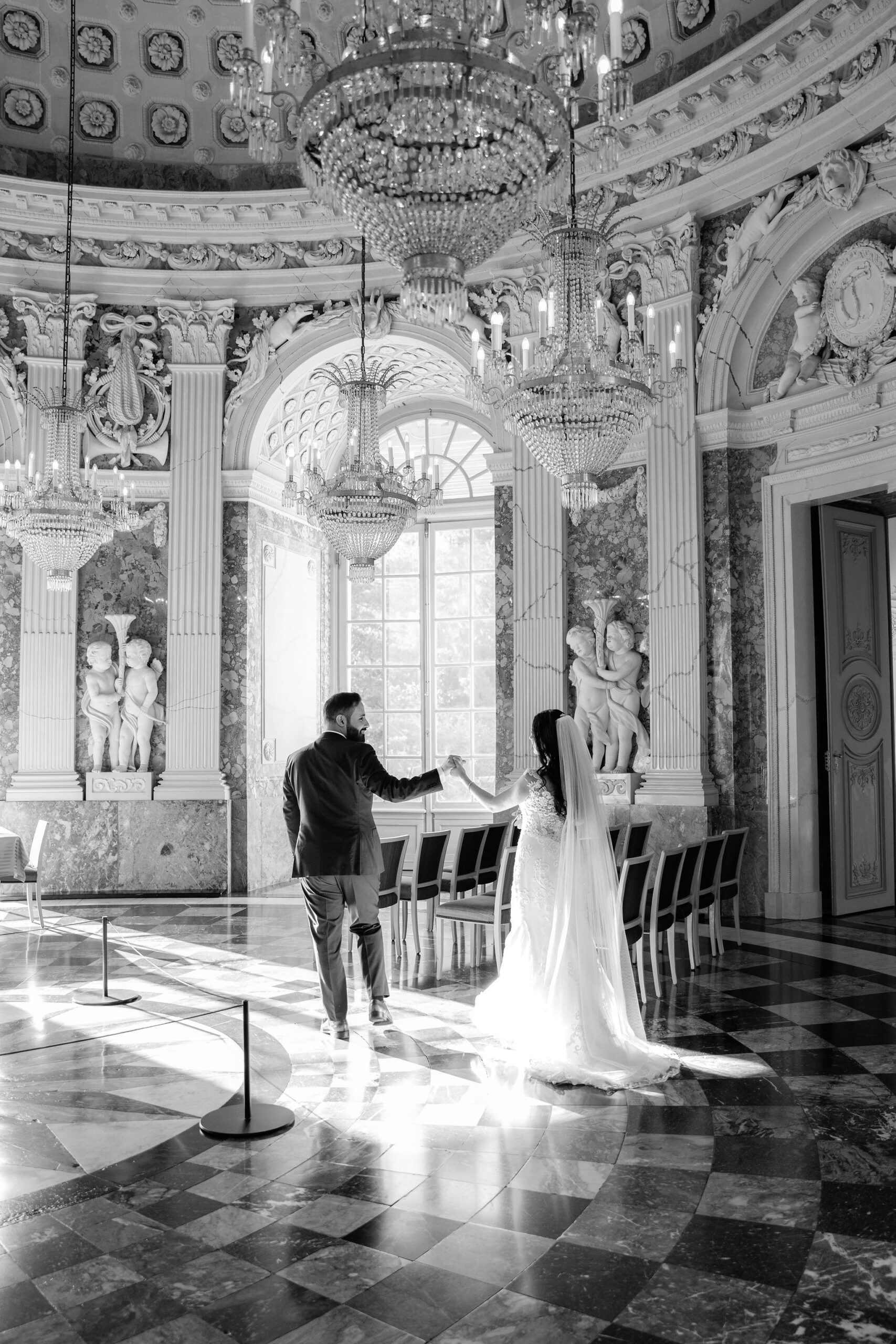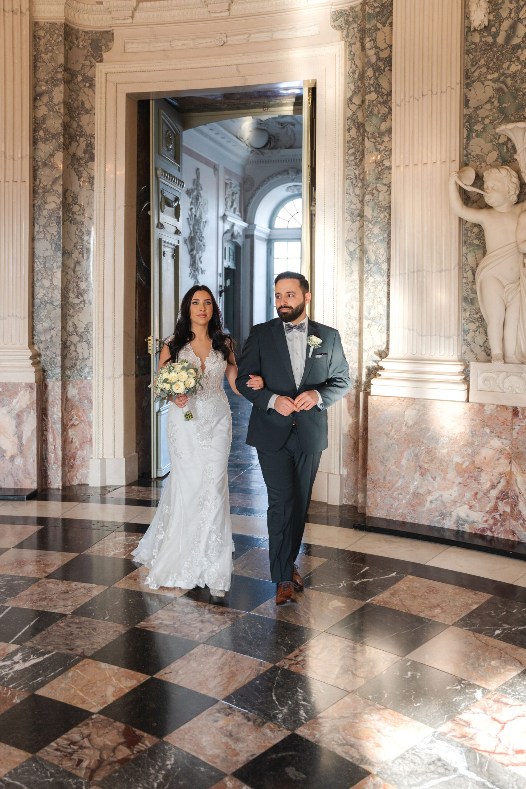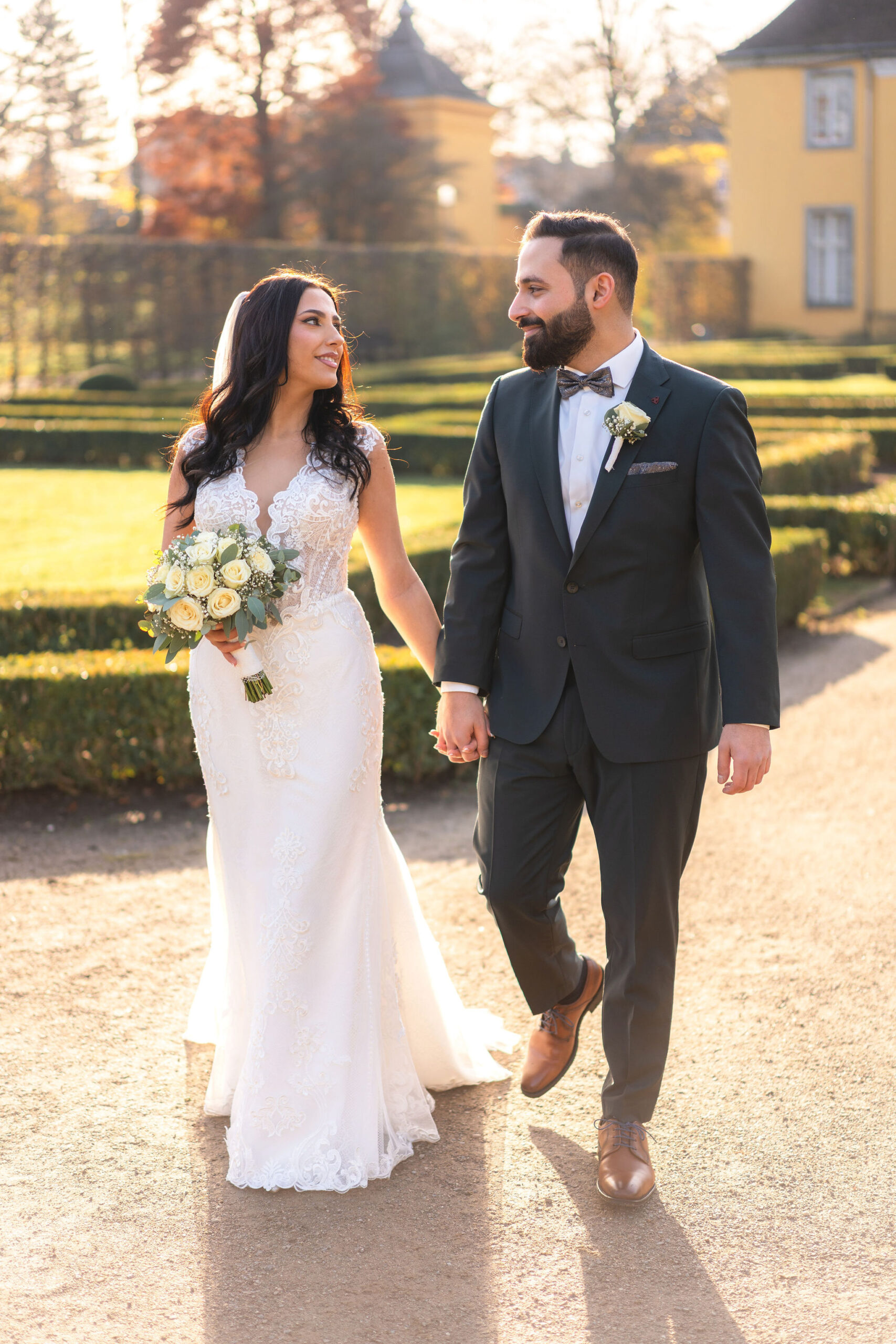 Elisabeth & Ihab feierten ihre standesamtliche Trauung im Schloss Benrath – eine Kulisse, die mit ihrer Klarheit und Eleganz den idealen Rahmen für ihren Tag bot. Zwischen den historischen Fassaden und den weiten Parkanlagen entstanden natürliche, zeitlose Aufnahmen voller Atmosphäre. Wie bei jeder Reportage lag der Fokus auf echten Momenten, ergänzt durch eine ruhige, präzise Anleitung, wenn sie sinnvoll war. Das Ergebnis ist eine Bildstrecke, die den Tag nicht nur zeigt, sondern fühlbar macht.