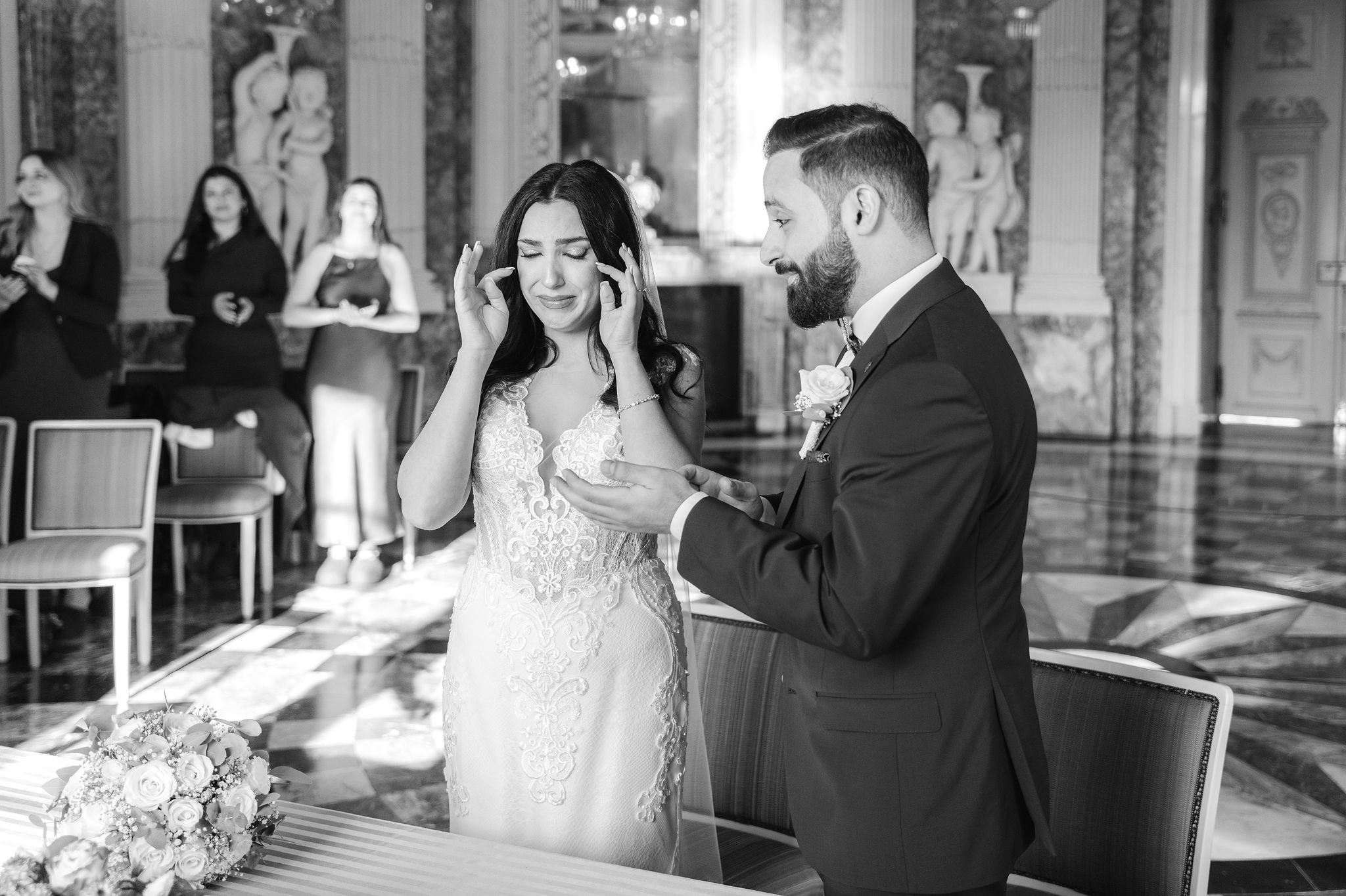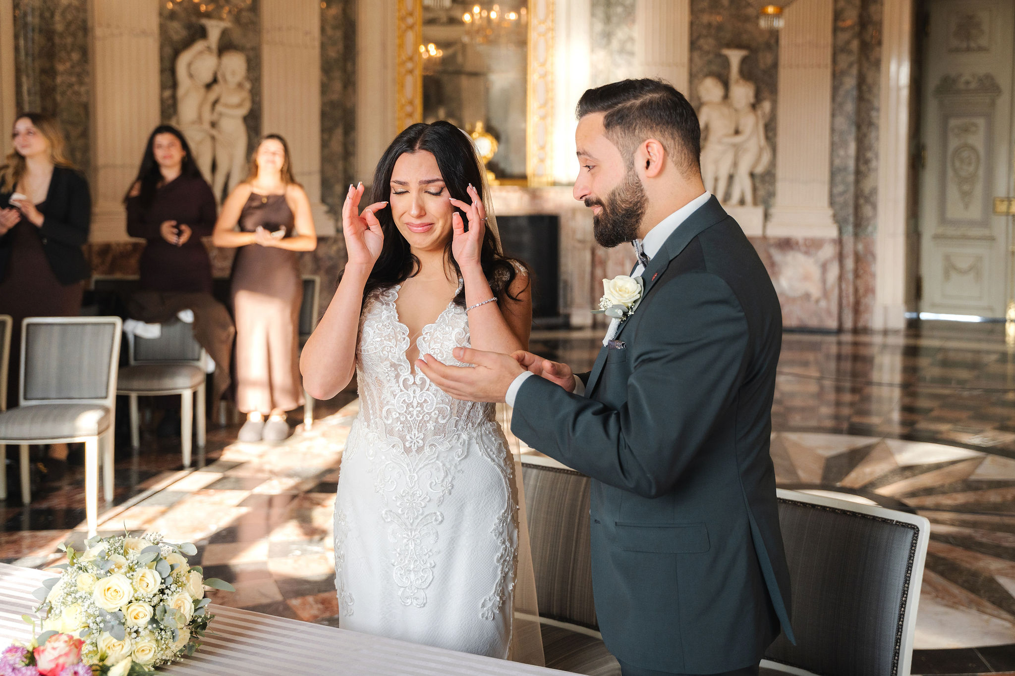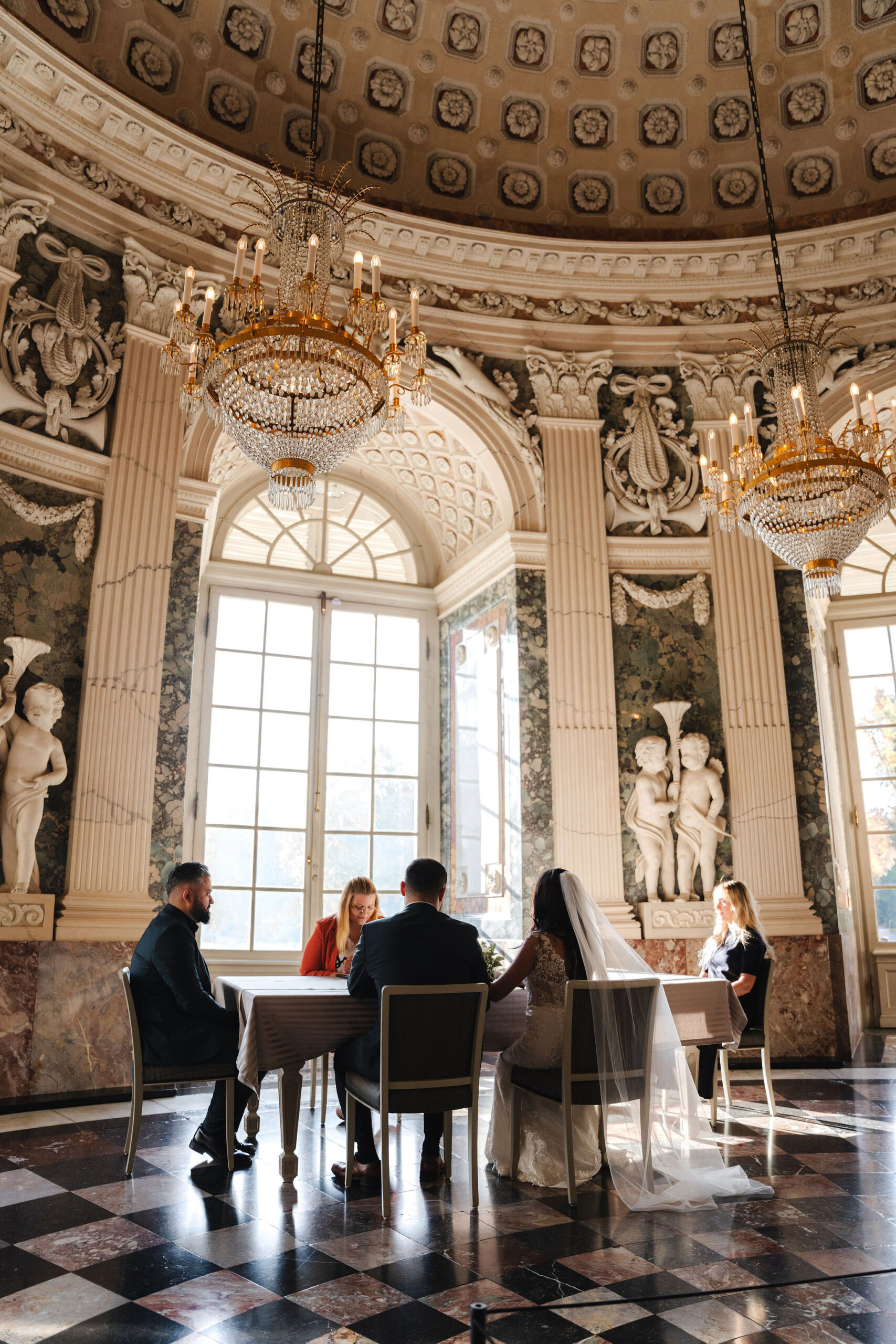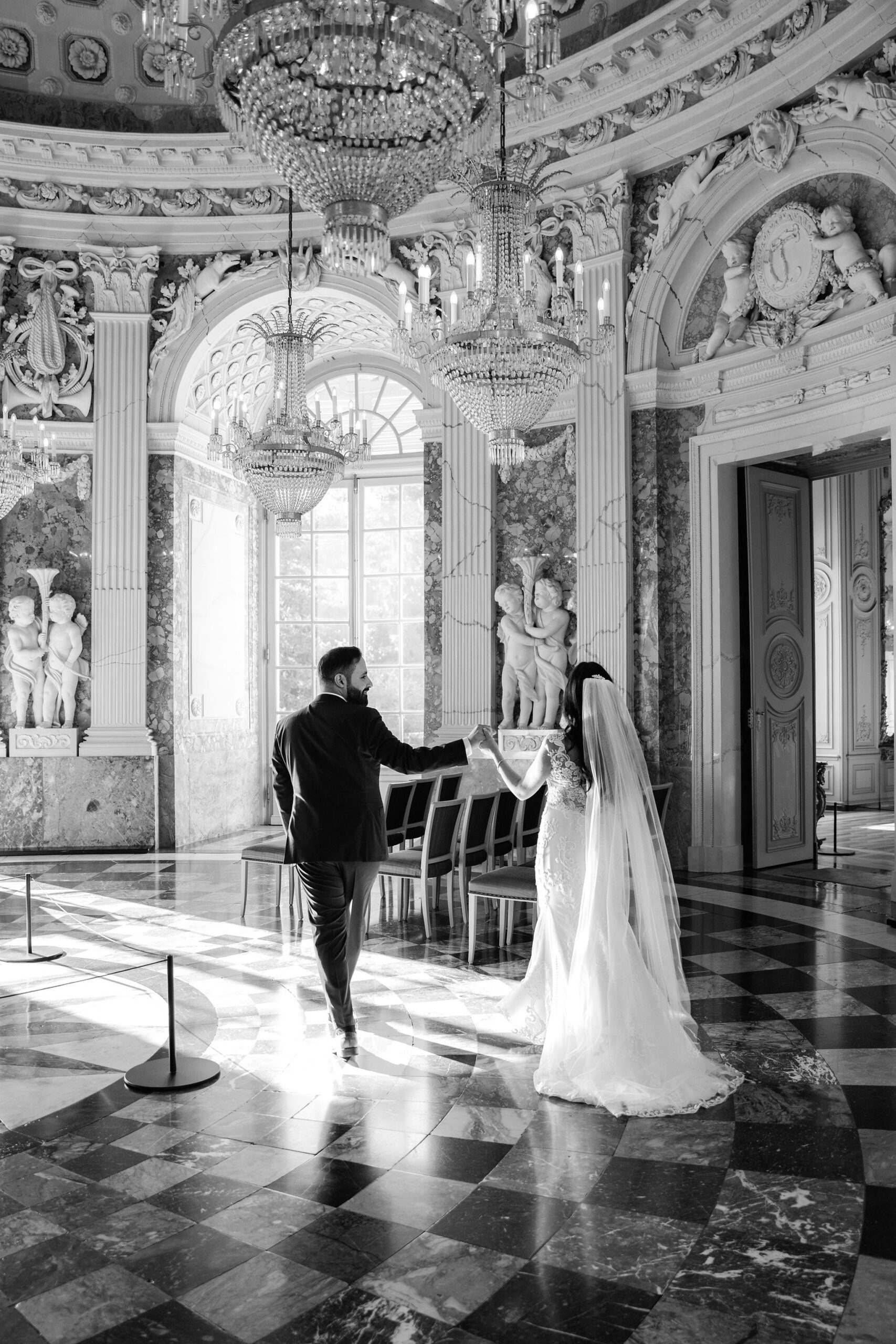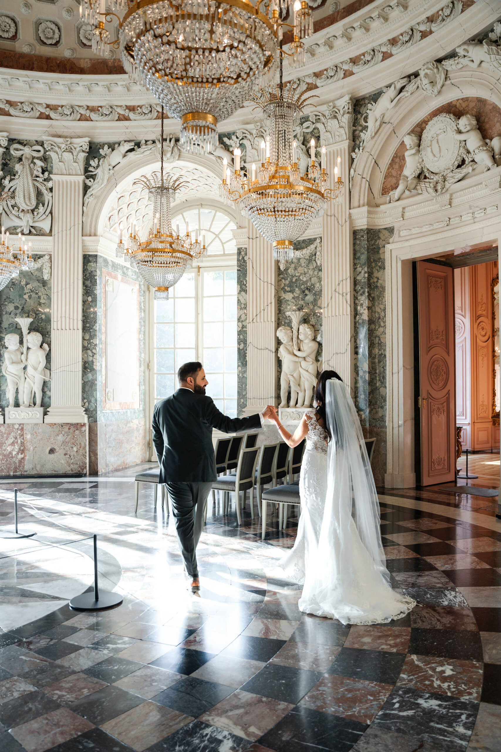 Elisabeth & Ihab feierten ihre standesamtliche Trauung im Schloss Benrath – eine Kulisse, die mit ihrer Klarheit und Eleganz den idealen Rahmen für ihren Tag bot. Zwischen den historischen Fassaden und den weiten Parkanlagen entstanden natürliche, zeitlose Aufnahmen voller Atmosphäre. Wie bei jeder Reportage lag der Fokus auf echten Momenten, ergänzt durch eine ruhige, präzise Anleitung, wenn sie sinnvoll war. Das Ergebnis ist eine Bildstrecke, die den Tag nicht nur zeigt, sondern fühlbar macht.